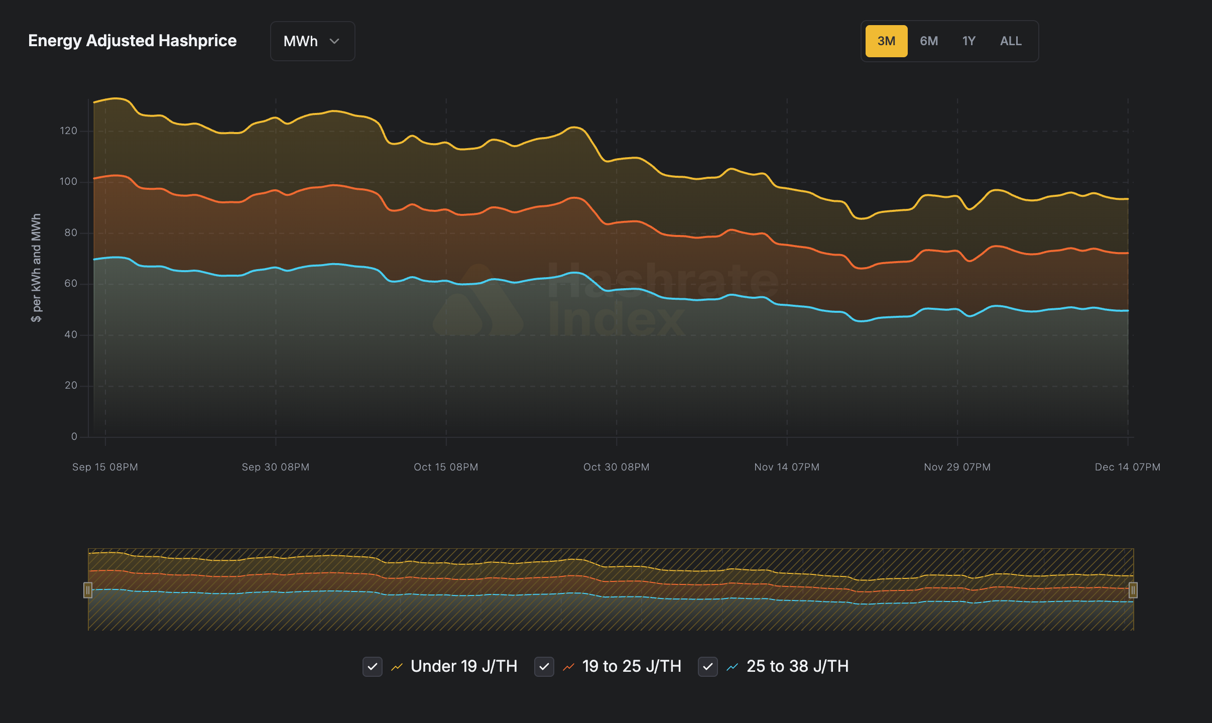 - Under 19 J/TH fleets — $94 per MWh